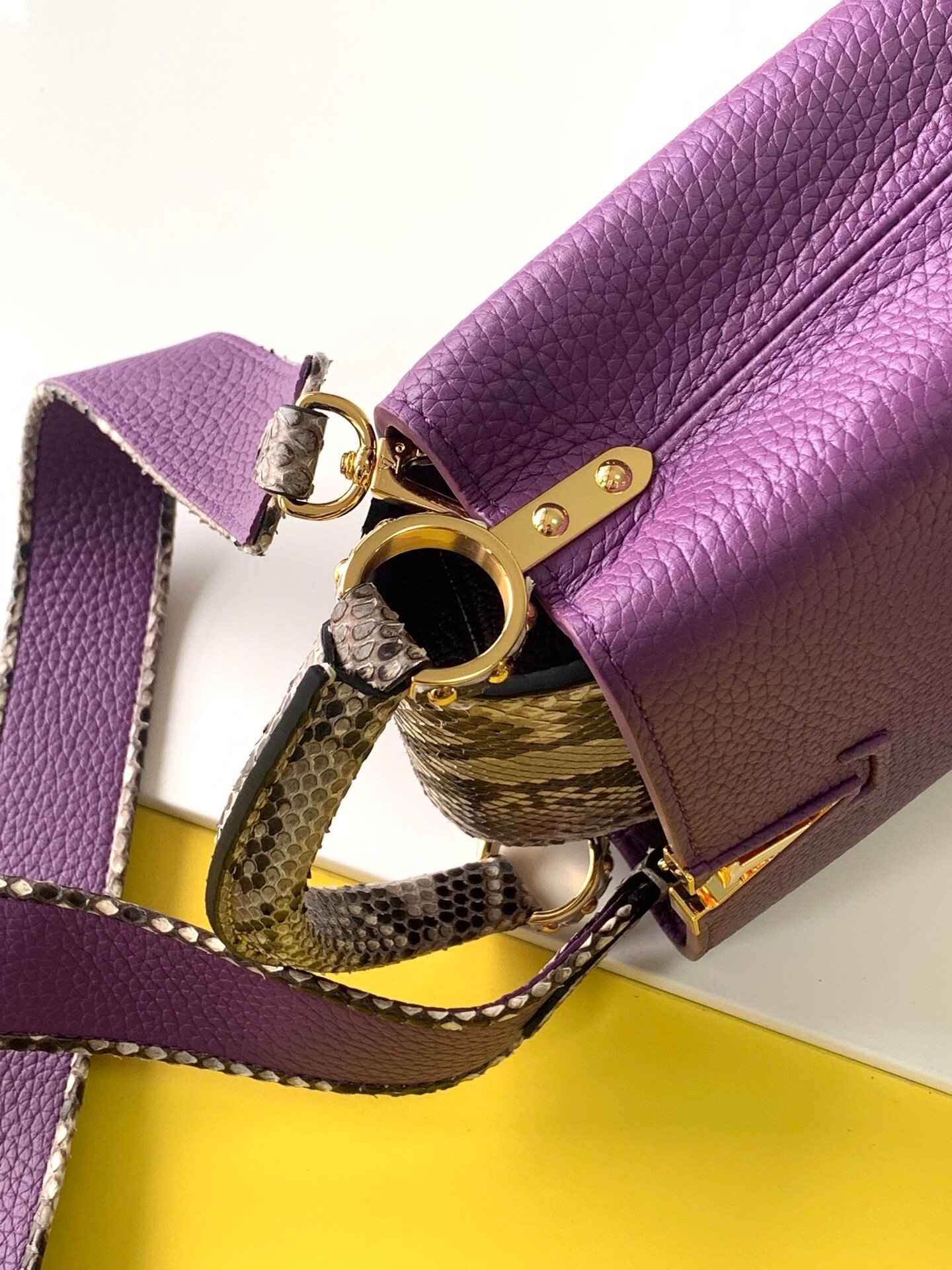 our deep purple handbag, beautifully designed with a detachable long strap and an eye-catching python-style handle flap. The rich purple tone stands out with confidence, making this piece perfect for fashion lovers who appreciate elegance with uniqueness.