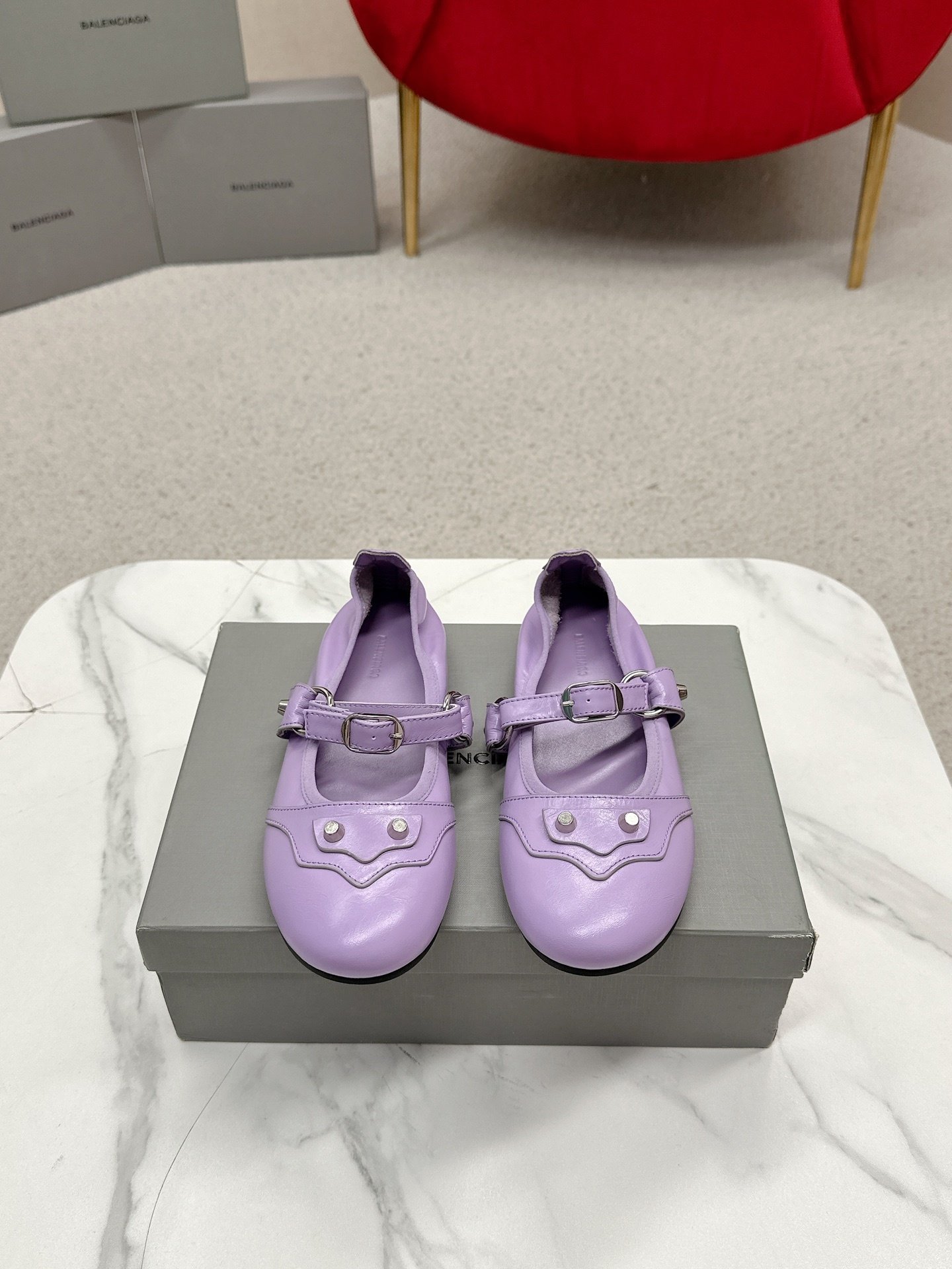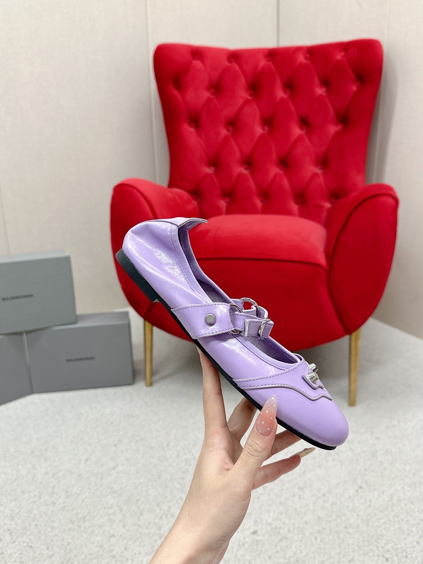 Stylish purple flats with a sleek shine and elegant buckle detail for everyday wear.